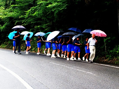 「この坂は土が粘土質で、昔は雨が降ると滑って登れなかったんだよ。」