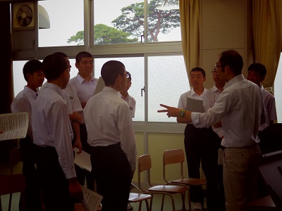男声パートを低音・高音に分けることに。「はい、ちょっと声出してみて。」