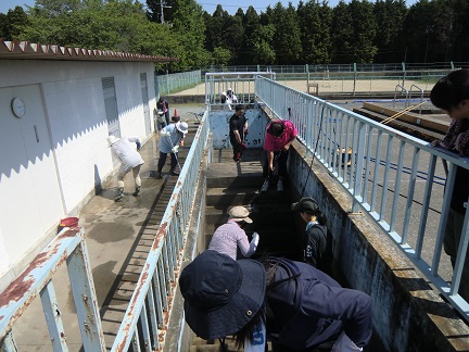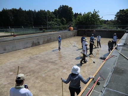 去る21日(日)に、PTA奉仕作業としてプール清掃を行いました。
