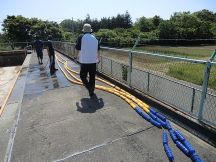 特に環境委員の方々は7時半前から集合され、底にたまった泥や落ち葉を掃除してくださり、大変お世話になりました。おかげで8時30分から水を流しての清掃作業に入ることができ、予定より早く作業を終えることができました。