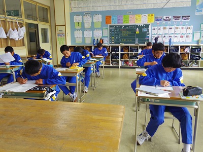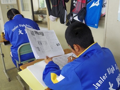 初めての定期テストを経験した1年生。最後の1教科、頑張って^0^