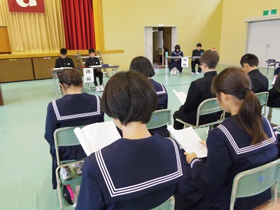会長自らが回答しました。1年生にとっては初めての経験。緊張したね^-^