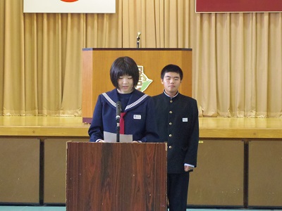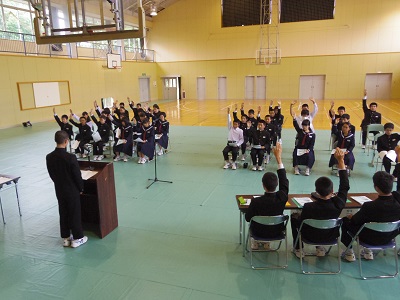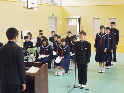 初めてのステージで緊張した生徒もいたようですが、各部立派に決意表明できました。