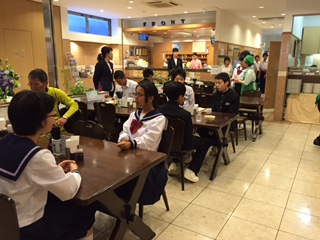 バイキング形式ですが、ご飯類が時間差で出るのでそれまで待っている生徒も。