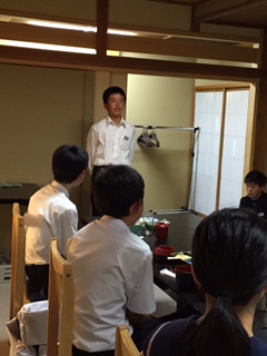 夜のつどいでは、班長がそれぞれ今日の活動について感想を含め報告をしました。