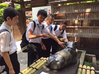 体験場所からバス停に向かう途中、菅原公を祀った天満宮を発見!