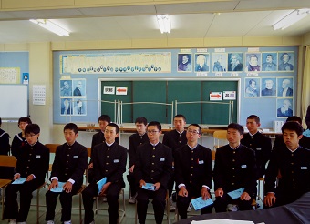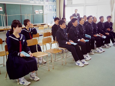 明日から3年生は修学旅行です。3校時に音楽室で結団式を行い、旅行に向けてのクラス全員の心構えを改めて確認しました。