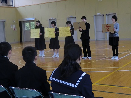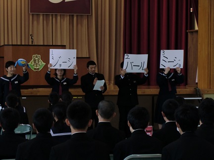 答えは、ホームページ「学校案内」の生徒会のコーナーをご覧ください^-^