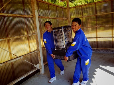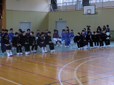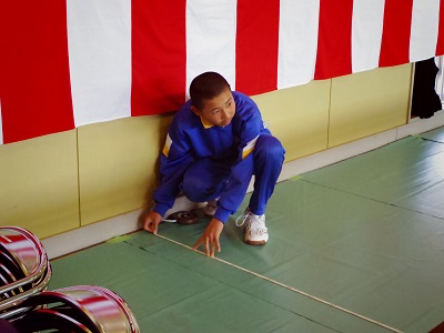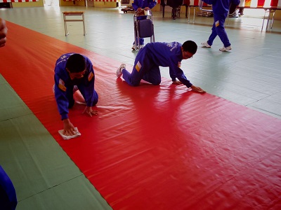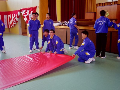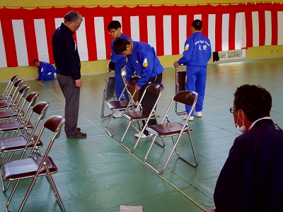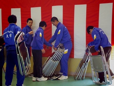 さて、2・3年生は前日の5日(水)に、部活動返上で入学式の会場作りを行いました。