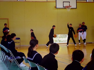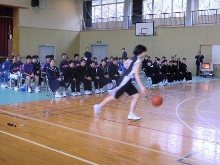 バスケ部はシュート練習の場面を見せ、シュートが決まる度に大きな拍手が起こっていました。
