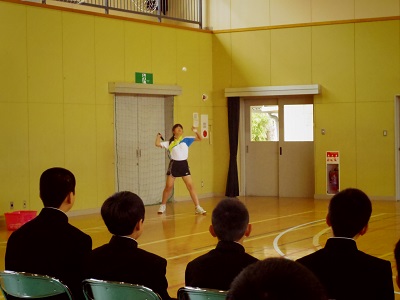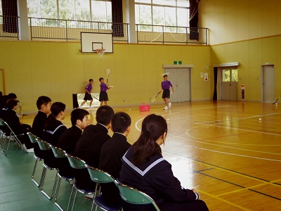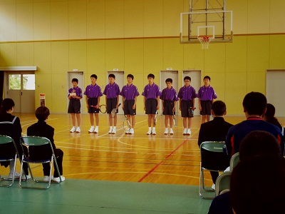 ソフトテニス部では、前衛の練習を見せました。かっこよくスマッシュを決めていましたが、写真でご紹介できずごめんなさい。