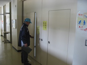 訓練と点検を兼ねて、事前に防火扉を閉めました。