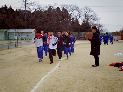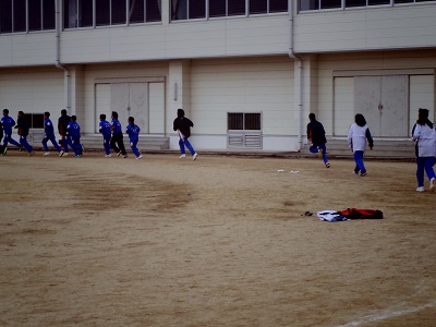 まずは、8時から陸上の練習です。新年のあいさつから行いました。