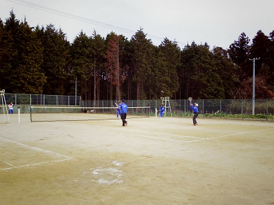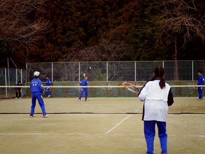 テニス部は、男女で試合をしました。1年生も上達してきました。