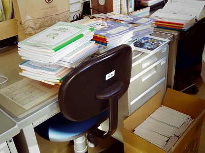 集めたら机の上だけでは足りず、下の段ボール箱もぎっしりになりました。