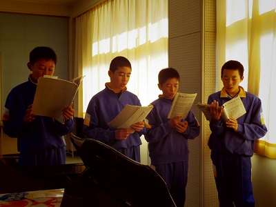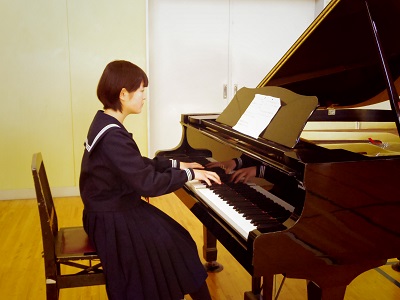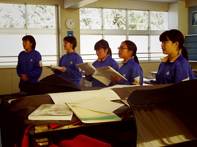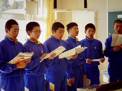 女声と男声の高音部は、音楽室でCDを伴奏にして歌っていました。