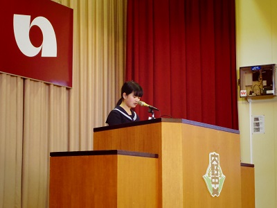 始業式の後で、各学年代表者が3学期の抱負を発表しました。