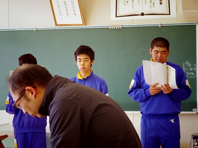 生徒指導の先生からは、「この3学期は、自分がどんな姿になっていたいか、ゴールをイメージして生活してほしい。3学期は次の学期への0学期。1・2年生には、新入生にここまで成長できるんだという姿を見せてほしい。」というお話がありました。