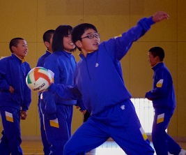 生徒会長がボールを準備したり、タイムを計ったり、ルールを説明したり。