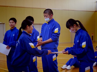 このほかに、「宝探し」で最高得点の「お宝」を探し当てたAチーム3年生に「ラッキーグループ賞」、宝探しの途中でもきちんと体育館用と校舎用のシューズを履き替えたBチームとCチームの2年生に「ベストマナー賞」が授与されました。