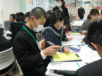 一人ひとりに、「年収」「家族構成」等の条件が与えられ、その条件の中で生活設計を疑似体験するという学習です。年収は約200万円~700万円までと差があり、収入によって「住める家」や「乗れる自動車」のタイプが異なってくる、かなり現実的な学習でした。収入のほかに株券を所有する人たちもいて、資産状況もいろいろでした。