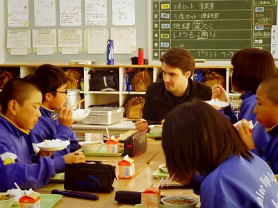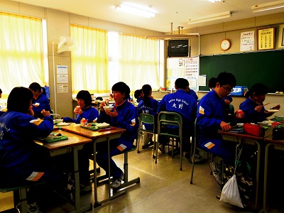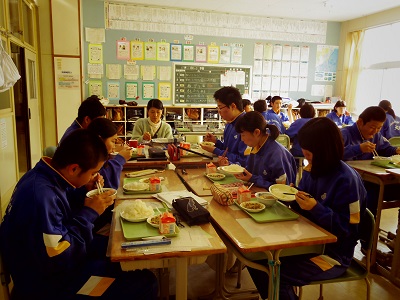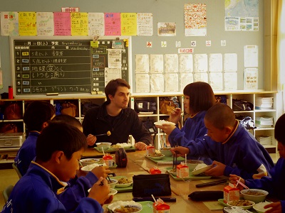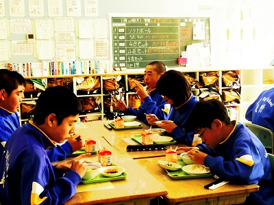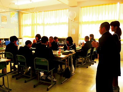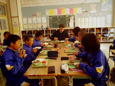 今週はALTのチャールズ先生が来てくださっていますが、チャールズ先生もお昼は子どもたちと一緒です。