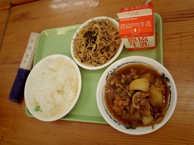 ごはん・肉じゃが・切り干し大根とごぼうの含め煮・牛乳でした。