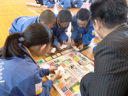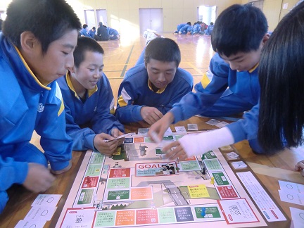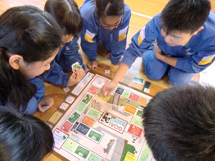 6校時はぼうさいボードゲーム「いえまですごろく」を10班に分かれて行いました。
