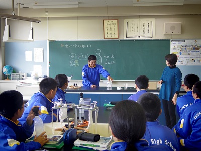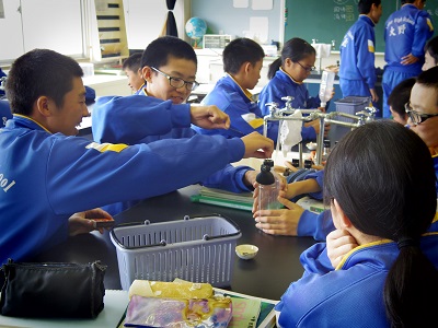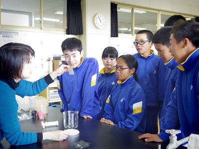 今日の2年生の理科の授業は、雲のでき方を調べる実験でした。加圧と減圧について学 習した後、班ごとにペットボトルと線香を使って実験を行いました。1年生の学習内容をしっかりとふまえて、学習に臨みました。