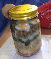 お母さんが作ってくれたご飯を、ジャーの中に詰めました。混ぜてもおいしかったです。