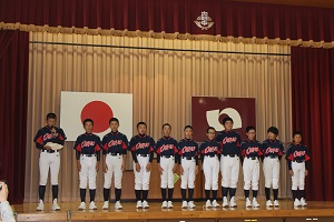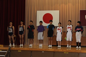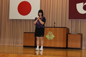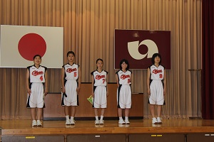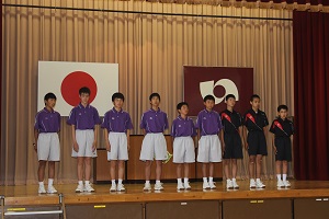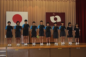生徒会役員の進行により、中体連市大会に参加する生徒を激励しました。また、友&愛部の生徒を中心に結成された応援団により、各部活にエールが送られました。