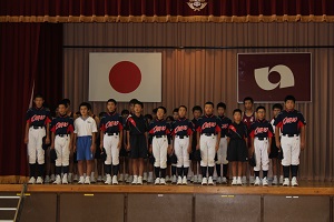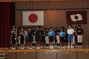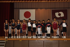 いわき市駅伝大会に出場する特設駅伝部、新人戦に出場する野球部・男子テニス部・女子テニス部・バスケ部の選手を激励しました。