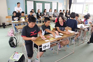 1~3年生(体育・数学・美術)の授業見学を行い、その後、英語の授業体験を行いました。