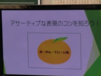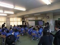 今回の授業では、学級活動の授業の中で指導項目である「 望ましい人間関係の確立 」に向けて「 アサーティブな表現方法 」のコツ(「 み・かん・てい・いな 」・「 見る・感じる・提案・否か 」)を理解することを目的として行われました。授業の中では、班毎に考え話し合い、ワークシートに記入していました。後半は、ロールプレイを取り入れて体験し本時の目標に迫っていました。最後に、感想を述べ教師の説話を聞いて終わりました。