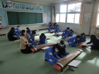 四倉高等学校箏曲部の顧問の先生や高校生(2人)に演奏のやり方を教えていただきながら、「 ジングルベル 」を演奏しました。