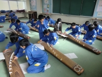 本日(10日)、四倉高等学校箏曲部の皆さんが来校し、3・4校時目に1年生を対象に箏体験学習を行っていただきました。