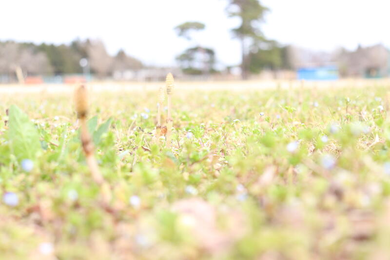 校庭の片隅に淡く佇む2本のつくしを見つけました