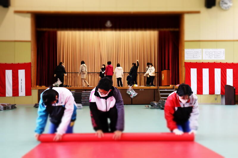 式場の片付けに,昨日の卒業生だけではなく,歴代の卒業生たちが...