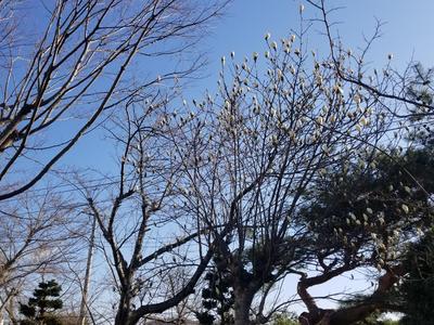 池(いけ)のそばのハクモクレンが、もうすぐさきそうです。