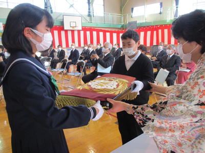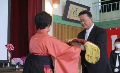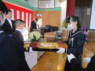 続いての閉校式では、卒業生の手を介して校旗返納を行いました。