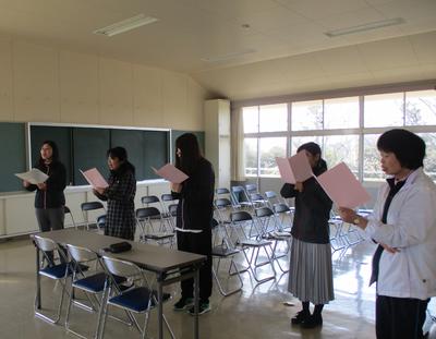 子どもたちによる「呼びかけ・歌」ができなかったので、代わりに先生方が「旅立ちの日に」を歌いました。