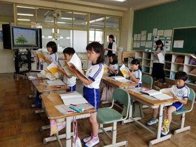 音読をしています。自分の好きな部分を読む「たけのこ読み」です。