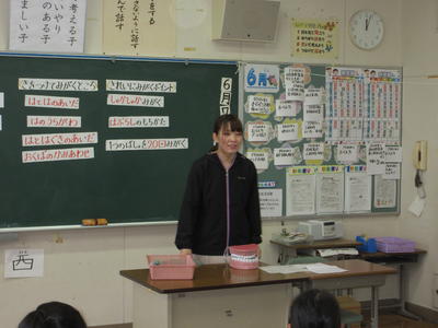 養護教諭による、歯磨き指導がありました。(1~4年生)