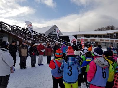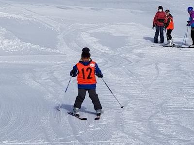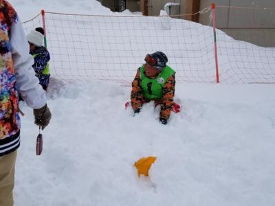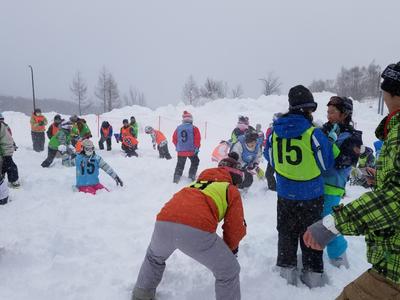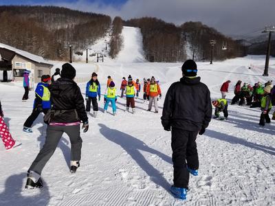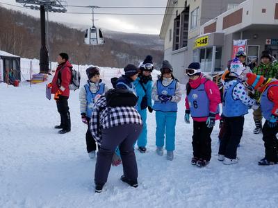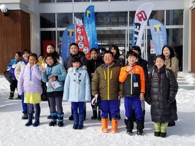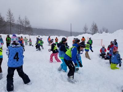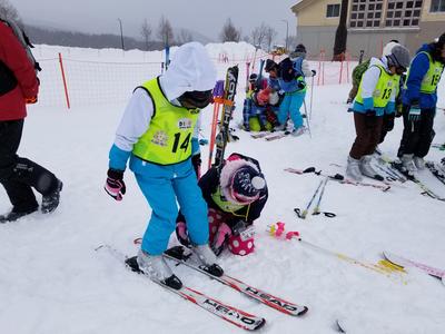 ウォーミングアップも終わり、スキーに挑戦です。北塩原の友だちに助けてもらいながら、ブーツを履くことができました。