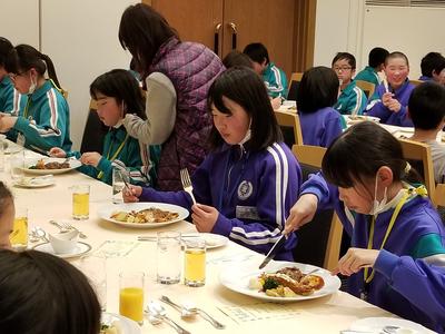 今日の夕食は、ナイフとフォークを使います。少し緊張気味ですね。