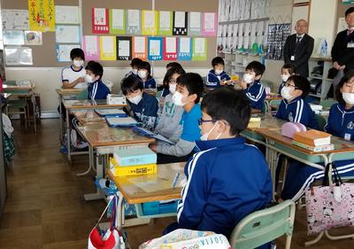 活動の後は大浦小学校の教頭先生と校舎の見学です。