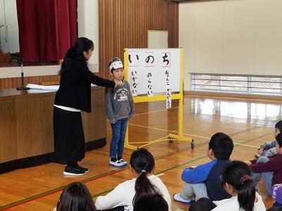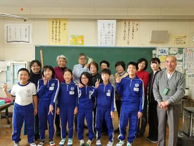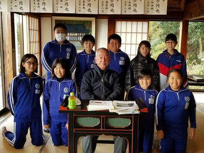 ご住職と5年生。ご住職は、大野一小の大先輩でもあります。