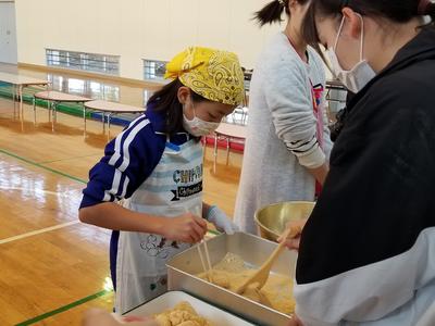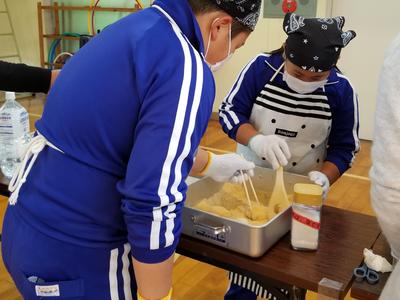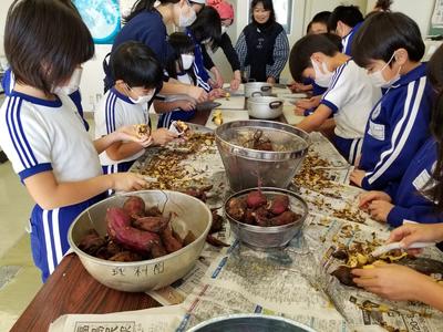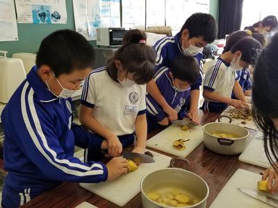 1年生から4年生で、さつまいもの下ごしらえをします。