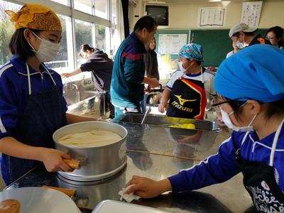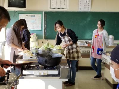 また、1・2年生が収穫したさつまいもを入れた芋汁も作りました。