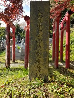 大野一小発祥の地を示す石碑が建っています。